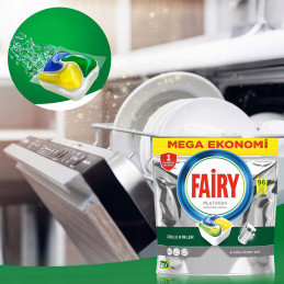Fairy Platinum All in One Spülmaschinenkapseln sind eine fortschrittliche Lösung, die für außergewöhnlich sauberes Geschirr und Schutz in der Spülmaschine sorgt. Jede Kapsel kombiniert die kraftvolle Wirkung von Flüssigkeit, Pulver und Spülsalz, um selbst die hartnäckigsten Verschmutzungen wie angetrocknetes Fett und Speisereste zu bekämpfen. Das Produkt reinigt nicht nur effektiv das Geschirr, sondern verhindert auch Kalkablagerungen und schützt die Metallteile des Geschirrspülers vor Korrosion.