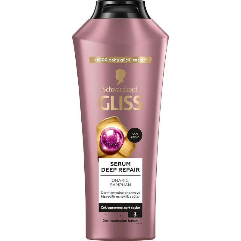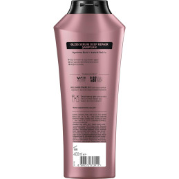 Schwarzkopf Gliss Serum Deep Repair Shampoo 400ml ist ein aufbauendes Shampoo für trockenes, geschwächtes und durch Stylingbehandlungen geschädigtes Haar. Die fortschrittliche Formel auf Basis der Serum-Technologie hilft, die Haarstruktur intensiv wieder aufzubauen und gibt ihr Kraft, Elastizität und ein gesundes Aussehen zurück. Das Shampoo reinigt Haar und Kopfhaut effektiv und bietet gleichzeitig lang anhaltenden Schutz vor Schäden.