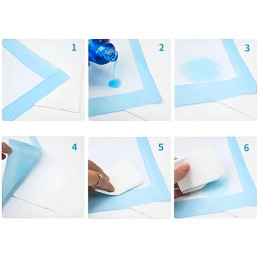 Dank ihres mehrschichtigen Aufbaus absorbiert die Unterlage effektiv Feuchtigkeit und schließt sie ein, während die wasserdichte Unterschicht Böden, Teppiche, Betten und Polster vor Durchnässung schützt. Durch die schnelle Absorption bleibt die Oberfläche trocken, was den Komfort für Ihr Haustier erhöht und die Ausbreitung von unangenehmen Gerüchen reduziert.