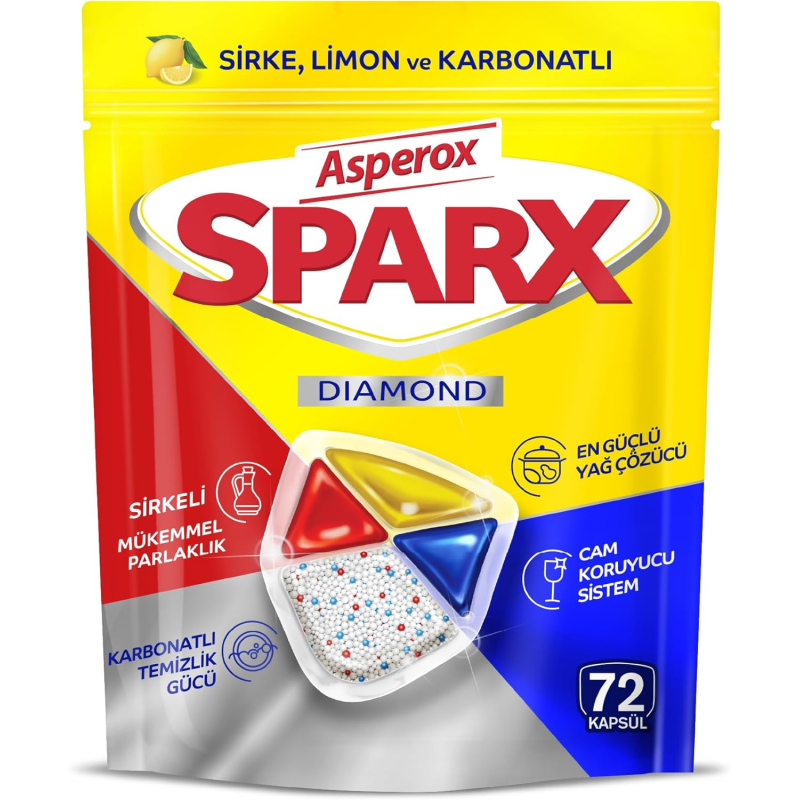 Asperox SPARX 3in1 Diamond Lemon Spülmaschinenkapseln sind eine effektive und praktische Lösung für die tägliche Reinigung der Spülmaschine. Die fortschrittliche 3in1-Formel kombiniert die Funktionen von Spülmittel, Salz und Klarspüler und sorgt für hervorragende Reinigungsergebnisse, ohne dass zusätzliche Produkte benötigt werden.