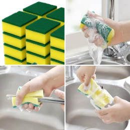 Die Universal-Küchenschwämme mit den Maßen 9 x 6 x 3 cm sind ein unverzichtbares Utensil für jede Küche. Sie eignen sich sowohl für den täglichen Abwasch als auch für die Entfernung schwierigerer Verschmutzungen von Töpfen, Pfannen, Arbeitsplatten oder Spülen. Dank ihres klassischen Designs und ihrer optimalen Abmessungen liegen die Schwämme gut in der Hand und lassen sich bequem benutzen.