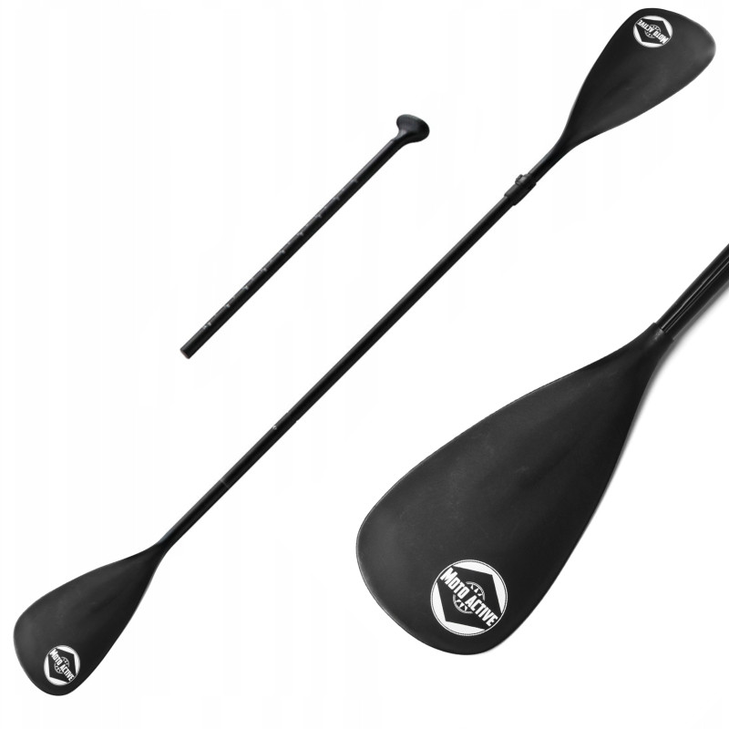 Das Paddel ist ideal für SUP Paddleboards, nach dem Anbringen einer zweiten Feder (Lappen) kann es als Kajakpaddel verwendet werden. Es hat eine einstellbare Länge dank der Teleskopkonstruktion (mit einer Feder - 170-210 cm, zwei - 205-225 cm). Das Paddel ist leicht zu transportieren und nimmt nicht viel Platz ein.