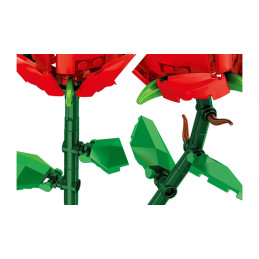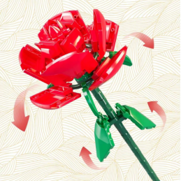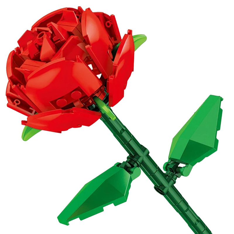Das Set besteht aus 59 präzisen Teilen, die, wenn sie zusammengesetzt werden, ein realistisches Modell einer roten Rose mit grünem Stiel und Blättern ergeben. Eine perfekte Idee für ein romantisches Geschenk, eine Schreibtischdekoration oder ein einzigartiges Geschenk für Liebhaber des Bauens mit Bauklötzen.