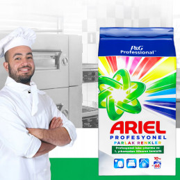 Ariel Professional Kolor to skuteczny, profesjonalny proszek do prania tkanin kolorowych, stworzony z myślą o wymagających użytkownikach w branży HoReCa oraz pralniach przemysłowych.