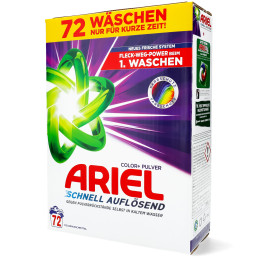 Das Ariel Farbwaschmittel mit Quick Dissolve Technologie bietet einen wirksamen Schutz der Farbintensität und perfekte Sauberkeit auch bei niedrigen Temperaturen und wurde speziell für farbige Textilien entwickelt, um hartnäckige Verschmutzungen zu entfernen, ohne dass die Kleidung ausbleicht. Die ideale Wahl für alle, die lange Freude an frischen und leuchtenden Farben haben wollen.